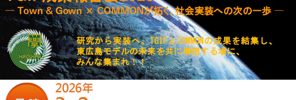 続きを読む “2026.03.02 第16回TGIFセミナー「TGIF成果報告会2025 ー Town & Gown x COMMONが拓く、社会実装への次の一歩 ー 」”